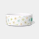 This fabulous mid century modern pet bowl features starburst fireworks in orange, green, and turquoise along with your pet's name in a black casual font. Add a fun element to your pet's feeding time!