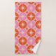 Mid Century Starbursts on Pink Orange Circles Bath Towel Set