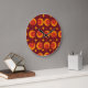 This is elegant classic mid century modern atomic starbursts on geometric abstract circles in orange, tangerine and red on burgundy background. It's great looking clock for anyone who retro geometric designs