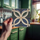 This exquisite mid-century modern ceramic tile is a loving homage to the time-honored Arts and Crafts movement. Expertly crafted in our Barcelona workshop, it features abstract symmetrical shapes and imitates the captivating allure of mid-century modern faux relief tiles. The symmetrical designs echo a harmonious balance, the ideal expression of abstract aesthetics of mid-century modernism.