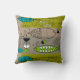 Mid-Century Whimsical Fish Art Teal Brown Throw Pillow
