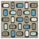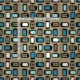 Midcentury MCM Rounded Rectangles Gold Blue Fabric
