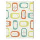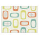 A simple minimalist 1950s abstract art pattern with rounded rectangles and sputnik starbursts in chartreuse, turquoise and orange.