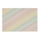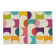 This geometric print has simple coordinating half circle shapes in turquoise blue, sunny yellow, dark purple, lime green, raspberry, orange, pink and cream. The abstract design has a cool modern look. The reverse side has a coordinating pattern of diagonal stripes. This placemat coordinates with other items in the Palm Springs Collection from Delfuneum.