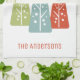 Add a name to create a personalized Christmas kitchen towel. This towel features illustrations of three Christmas trees in light green, light blue and red with a name or your own custom text below in red.