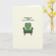 This card shows a stylized armchair centered on a soft cream background, drawn with smooth lines that feel cozy and a little flirty ❤️. The chair is upholstered in deep green-teal, while the curled armrests are highlighted with mustard yellow, like a warm touch on someone’s sleeve. Slender tapered wooden legs lift it lightly off the ground, giving the scene a tidy, airy look. Above the chair, the message “YOU’RE NOT OLD YOU’RE MID-CENTURY MODERN” sits near the top in bold sans-serif letters. The text appears in a dark tone that stands out clearly against the pale backdrop, leaving plenty of breathing room around it. The warm cream and yellow tones soften the cooler green-teal, creating a friendly, close-at-heart mood like a gentle inside joke between two people 🌼. The chair’s mustard accents frame the seat like welcoming arms, and the background stays uncluttered so the chair and top-line text remain the focus.