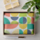 Midcentury modern retro geometric abstract green orange yellow teal pattern design.