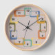 Midcentury Modern Shapes surround the numbers on this retro style clock. The interlacing modern squares are in retro colors from the 1950s and 60s.