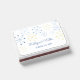 These custom printed wedding favors feature a fun retro vibe with a Mid-century Modern style design. Colorful atomic asterisks or snowflake shapes decorate these matchoxes. The asterisk shapes are in shades of blue and yellow. Use the template fields to easily personalize these with your information in royal blue lettering.