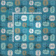 Midcentury Pattern Oblongs Teal White Gold Fabric