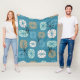 Midcentury Pattern Oblongs Teal White Gold Fleece Blanket