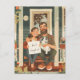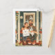 This is a lovely postcard that features an illustration of middle-aged wife and husband and their dog. The family sits on the porch of their homes holding a banner with the default but customizable text "don't forget us!" This is a great postcard to convey a message to younger family members that their parents are missing them.