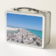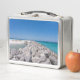 A metal lunch box featuring view looking out at the beautiful Emerald Coast of the Gulf Of Mexico in the middle of a rock Jetty at Shell Island, in Panama City Beach, Florida. Looking for more products? Visit my store: http://www.zazzle.com/timelessmomentsphtgy