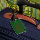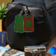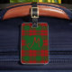 Luggage tag, with the red and green clan Middleton tartan plaid pattern and large one letter monogram, in the middle. The back is done in solid green, with custom red text. Personalize the monogram and text to suit your needs.