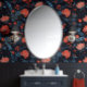 Infuse your space with bold elegance using our Midnight Berry Blooms peel and stick wallpaper. Featuring vivid red florals and berries intertwined with brilliant blue leaves on a rich black background, this design offers a striking mix of color and texture. Perfect for creating a statement wall or enhancing eclectic interiors, this renter-friendly wallpaper is easy to install and remove. 💕COMPLIMENTS OUR PATTERN NAMED: "(name)"💕
