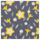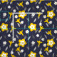 Retro flowers and leaves in white, grey, & ochre yellow over a midnight blue background. Background colour can be changed.