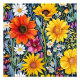 A vibrant and colorful floral seamless pattern featuring a variety of flowers in bloom against a dark background. This all-over-print design is perfect for fabrics, wallpapers, and other creative projects.
