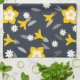 Retro flowers and leaves in white, grey, & ochre yellow over a midnight blue background. Background colour can be changed.