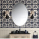 Midnight Bloom Tiles - Navy & Ivory - Traditional Wallpaper