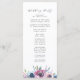 Elegant floral wedding program featuring your names encircled by a wreath of purple, mauve & blue watercolor flowers with green leaves. Personalize the floral wedding programs by adding your wedding date & location, order of events, and wedding party on the back. Designed to coordinate with our Midnight Blooms wedding collection.