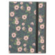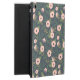 Chic floral patterned iPad case features a coral pink flowers and lush green leaves on a deep, smoky midnight blue background.