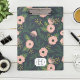 Our chic floral monogrammed clipboard makes a stylish addition to your office or home! Pretty blush and navy design features a pattern of coral pink flowers and lush green leaves on a deep, smoky midnight blue background. Personalize with your single initial monogram in matching midnight navy blue, or delete the sample initial, decorative dots and white badge element if not personalizing.