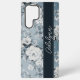 Samsung Case: Adorn your Samsung phone with this beautiful floral case, featuring big white blossoms and soft blue leaves on a pale smoky blue background. The vintage-inspired design and personalized handwritten font on a dark blue banner add a touch of elegance to your device. Offering full protection with style, this case is perfect for those who appreciate Cottagecore charm.