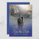 This is a simple but elegantly designed Save the Date card. Midnight blue and sunflower yellow colors were used which make a great pairing. The design overlays the top of your favorite engagement photograph. The back side of the card features a scripture quotation from the Song of Solomon (Songs).