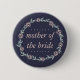 Identify the key players at your bridal shower with our elegant, sweetly chic floral buttons. Design features a midnight blue background and a wreath of pale blush pink flowers and sage green leaves, and "Mother of the Bride" in coordinating pastel pink italic lettering.