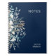 This beautiful notebook features a dark, midnight blue background and a floral bouquet made up of cool white, blue and other soft colors. Watercolor flowers and leaves add a feminine yet elegant touch to this design.