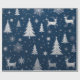 Elevate your gift-giving with this high-end holiday wrapping paper featuring a deep midnight blue background, shimmering silver stars, Christmas trees, and reindeer in metallic foil. The elegant design exudes luxury, making it the perfect choice for upscale gift wrapping this holiday season. Add a touch of sophistication and charm to your presents with this premium festive wrap.