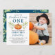 Midnight Blue Fall Pumpkin First Birthday Photo Invitation