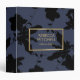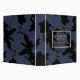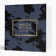 Coordinates with the Midnight Blue Floral Pattern with Gold Accents Business Card Template by 1201AM. An elegant designer binder with a midnight blue and black floral pattern features your name or business name within a faux metallic gold frame. Art and design © 1201AM CREATIVE