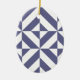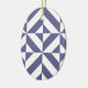 Midnight Blue Geometric Deco Cube Pattern Ceramic Ornament