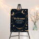 This foam board is more than just a decorative element; it's a piece of art that adds a unique and sophisticated touch to your wedding decor. The deep, midnight blue backdrop and shimmering gold accents create an atmosphere of mystique and elegance, perfectly aligning with your celestial-inspired theme.