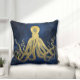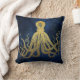 Midnight Blue Gold Octopus Coastal Retro Nautical Throw Pillow