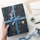 Midnight Blue Gold Star Constellation Pattern Wrapping Paper