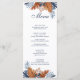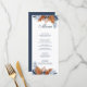 Turn the card over, and you'll find a sleek midnight blue background, providing a clean and polished look. The absence of a pattern allows the menu details to shine, ensuring clarity and readability for your guests.