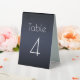 Create your own 4" x 6" vertical wedding table number text design on both the back and front of the table tent sign.
