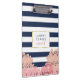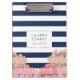This clipboard features a navy stripe background, faux gold border, and a group of peonies in pretty blush tones. Coordinates with our Navy Stripe & Blush Peony invitation suites, office supplies, home goods and accessories. Customize with a monogram, name or text of your choice!