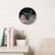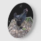 "Midnight Feathers: A Black Chicken in Popout Art" Large Clock
