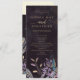 Midnight foliage, purple, topaz and gold foliage against a midnight background. Elegant off centre text. Wedding program / order of service or hymn sheet.