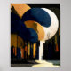 Fanshaped canopies in deep blue, gold, and soft beige rise like illuminated crowns above a geometric cityscape, blending nature and architecture into a single surreal vision. A glowing celestial disc casts light across the scene, while a winding luminous path leads the eye through towering trunks and structured blocks. The artwork balances organic radiating lines with bold urban forms, creating a dreamlike fusion of forest and skyline. Designed in a versatile 4:5 ratio, this highresolution digital download brings luminous artistry and handcrafted charm to any space, perfect for framing, gifting, or enhancing your home décor with vibrant garden elegance.#digitaldownload #AbstractLandscape #UrbanNature #GeometricArt #ModernSurrealism