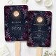 Keep your guests cool and informed with this elegant "Midnight Garden Moon" wedding program fan. Featuring a glowing full moon and rich, moody florals in deep burgundy and plum tones, this fan is a perfect complement to your celestial or garden-themed wedding. The hand fan provides details of your ceremony in a unique and practical format, ensuring your guests stay engaged and comfortable throughout the event. The dark and romantic design creates a stunning aesthetic for an evening or outdoor wedding.