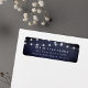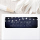 Elegant and luminous return address labels feature a midnight blue background with white lettering and strings of glowing white fairy lights.