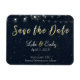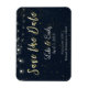 These magnets will wow your future wedding guests! Perfect for a night wedding. Also great for a winter or summer wedding. These cards feature a glamorous design of a night sky. On top of the magnet is a design of elegant string lights. The text "Save the Date" is in gold text (printed effect, not gold foil).