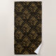 Midnight Gold Damask Elegance Beach Towel