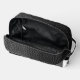 Discover our stylish black leather toiletry bag featuring an intricate textured surface with small, raised bumps for a sophisticated look. The glossy finish and subtle gradient lighting highlight its craftsmanship, making it the perfect travel accessory.