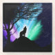 The Aurora Borealis. A wolf howling in the silence of the night. The scene is both dramatic and beautiful making it a magical piece of artwork.