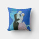 Midnight Kiss Art Deco throw pillow. Art Deco illustration from 1921. French artist Georges Barbier was famous for his beautiful and lively depiction of Parisian nightlife. Midnight Kiss depicts a couple standing on a balcony overlooking the river as a boat sails by in the distance. The man wears a black tuxedo and leans in for a kiss while the woman wears a frilly pink dress, pink bow and pink hair sash. Two blue doves fly above them into the night sky. A romantic gift for fans of Georges Barbier, Art Deco, and Vintage Paris.